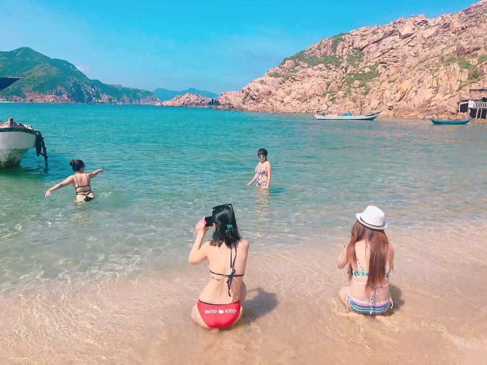 Khi tắm biển, bạn sẽ được trải nghiệm làn nước trong vắt, bãi cát trắng mịn, nhưng hãy lưu ý an toàn khi bơi, đặc biệt nếu đi cùng trẻ nhỏ. Nếu muốn lặn ngắm san hô, bạn nên thuê dịch vụ có hướng dẫn viên và trang bị đầy đủ dụng cụ bảo hộ, giá dịch vụ thường dao động từ 300.000 đến 500.000 đồng/người tùy theo gói. Đừng bỏ lỡ cơ hội chụp ảnh tại cây cầu gỗ ven núi – góc sống ảo cực “chất” mà bất cứ bạn trẻ nào cũng yêu thích.