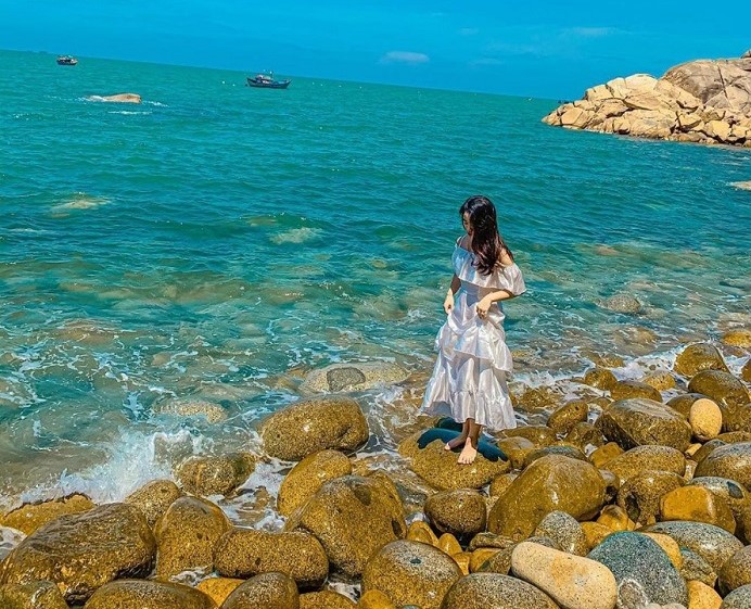 Đến đây, bạn sẽ được đắm mình trong không gian thiên nhiên rộng lớn, với diện tích hơn 35ha bao quanh bởi những quần thể đá núi nhấp nhô, chập chùng, tạo thành những hang động, rạng đá độc đáo. Một bên là bãi cát trắng mịn trải dài, một bên là biển xanh ngọc bích sóng vỗ rì rào, tất cả hòa quyện thành bức tranh thủy mặc vừa hùng vĩ, vừa thơ mộng.