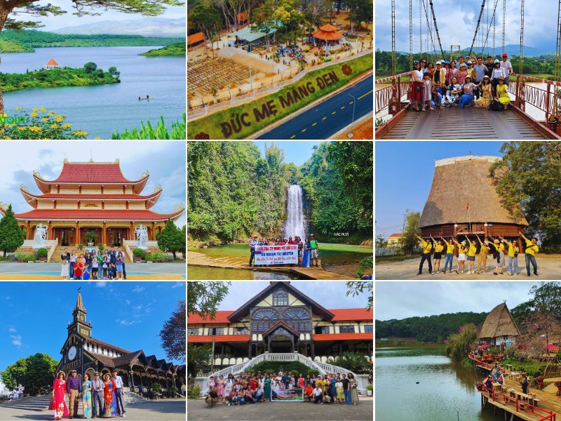 Trong hành trình tour, bạn sẽ được tham quan nhiều điểm đến hấp dẫn như con đường thông Măng Đen, tượng Đức Mẹ linh thiêng, vườn dâu tây và cà chua cho phép du khách tự tay hái và thưởng thức ngay tại vườn. Ngoài ra, thác Pa Sỹ, hồ Đắk Ke và làng văn hóa Kon Pring cũng là những điểm không thể bỏ qua, giúp bạn hiểu thêm về văn hóa và cuộc sống giản dị, thân thiện của người dân địa phương.